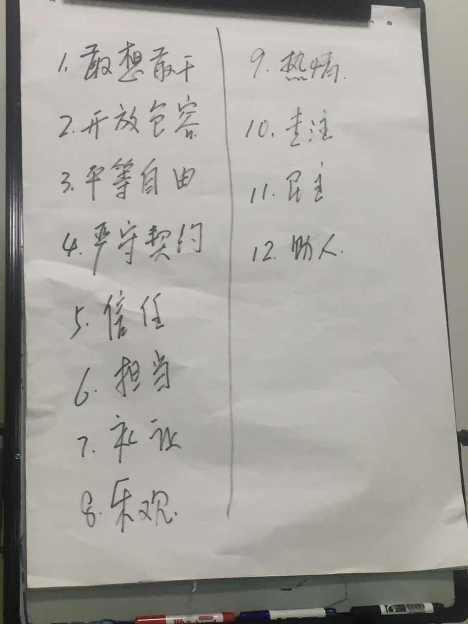 沙龍上,王老師從:敢想敢干,開放包容,平等自由,嚴守契約,信任,擔(dān)當(dāng),禮讓,樂觀,熱情,專注,民主,助人等方面與大家展開了討論和分享,輕松幽默的風(fēng)格,深入淺出的分析,深度與廣度并存的分享,讓大家沉醉其中。