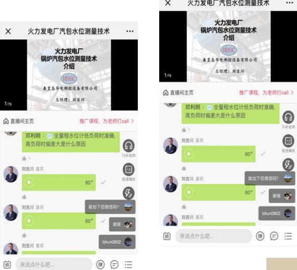 直播課程通過語音與PPT相結(jié)合,向大家詳細(xì)的講解了汽包水位測量系統(tǒng)技術(shù)規(guī)程的必要性、汽包水位測量系統(tǒng)改造必要性、汽包水位測量系統(tǒng)的問題及技術(shù)難點、如何解決、改造效果。為大家分享經(jīng)驗,直播最后20分鐘劉吉川總經(jīng)理現(xiàn)場為熱控技術(shù)人員進(jìn)行答疑解惑,解決了他們心中的疑慮,得到了技術(shù)人員的積極響應(yīng)和高度評價。