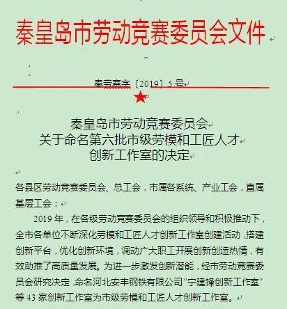 秦皇島華電測(cè)控設(shè)備有限公司“劉吉川創(chuàng)新工作室”喜獲殊榮,被秦皇島市勞動(dòng)競(jìng)賽委員會(huì)評(píng)為秦皇島市第六批勞模和工匠人才創(chuàng)新工作室。