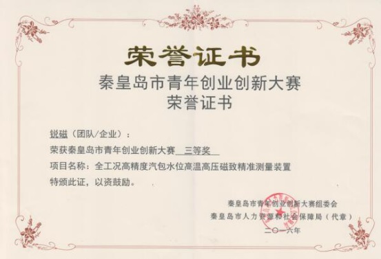 為給用戶提供更好的產(chǎn)品和服務(wù),華電測控始終致力于產(chǎn)品的研發(fā)和創(chuàng)新。早在2016年5月,公司組建“銳磁”和“新媒體”兩個(gè)團(tuán)隊(duì)參加秦皇島市青年創(chuàng)業(yè)創(chuàng)新大賽,其中“銳磁”團(tuán)隊(duì)的參賽項(xiàng)目為《全工況高精度汽包水位高溫高壓磁致精準(zhǔn)測量裝置》,“新媒體”團(tuán)隊(duì)的參賽項(xiàng)目為《煤倉綜合管理系統(tǒng)》,經(jīng)過不斷開拓創(chuàng)新,兩個(gè)項(xiàng)目先后在市級、省級及國家級的比賽中連獲殊榮?!度r高精度汽包水位高溫高壓磁致精準(zhǔn)測量裝置》獲得秦皇島市青年創(chuàng)業(yè)創(chuàng)新大賽三等獎(jiǎng),第二屆“中國創(chuàng)翼”青年創(chuàng)業(yè)創(chuàng)新大賽高端設(shè)備制造類項(xiàng)“金翼獎(jiǎng)”;《煤倉綜合管理系統(tǒng)》獲得秦皇島市青年創(chuàng)業(yè)創(chuàng)新大賽三等獎(jiǎng),河北省青年創(chuàng)業(yè)創(chuàng)新大賽三等獎(jiǎng),第二屆“中國創(chuàng)翼”青年創(chuàng)業(yè)創(chuàng)新大賽高端設(shè)備制造類項(xiàng)“銀翼獎(jiǎng)”。