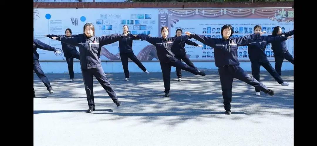 原來(lái),是我們的美女員工們正在操練???,身著筆挺工裝的她們還在為職工廣播體操展演做最后的準(zhǔn)備。