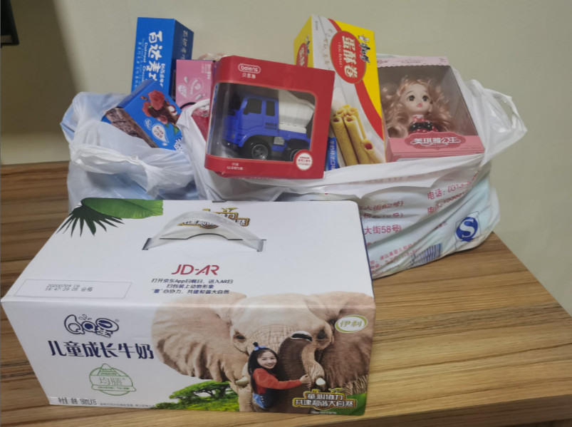 我公司員工發(fā)揚華控集團大愛無疆的精神,李江、李小濱當晚在超市購買了零食、牛奶、玩具、日用品等。