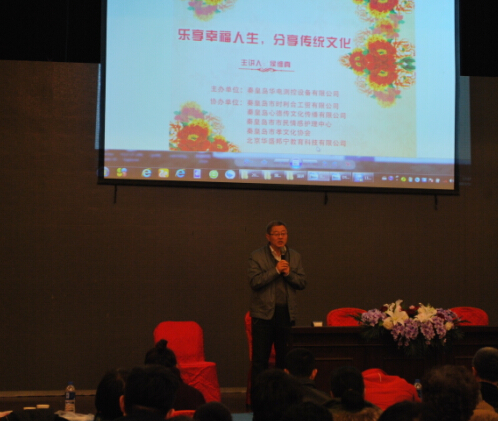 本次講座由河北省政協(xié)委員、秦皇島市工商聯(lián)副會(huì)長(zhǎng)、秦皇島金維達(dá)機(jī)械有限公司董事長(zhǎng)、“善人道”團(tuán)隊(duì)隊(duì)員――侯維真老師及其團(tuán)隊(duì)全程策劃,侯老師及其團(tuán)隊(duì)成員,為大家感情真摯、言辭懇切地分享了自己學(xué)習(xí)傳統(tǒng)文化的真知灼見(jiàn),與會(huì)人員無(wú)不受益,會(huì)場(chǎng)掌聲此起彼伏、高潮迭起;動(dòng)情之處,會(huì)場(chǎng)許多人一起抽泣、哽咽,受益匪淺?;顒?dòng)中,大家還一起誦讀了中華傳統(tǒng)典籍《弟子規(guī)》,欣賞了習(xí)近平總書(shū)記作詞的歌曲《志成學(xué)子之歌》(習(xí)近平主席寄語(yǔ)),滿(mǎn)滿(mǎn)的正能量在會(huì)議大廳流淌。午休時(shí)間,孝文化協(xié)會(huì)還為大家獻(xiàn)上了文藝表演,以?xún)?yōu)美的舞蹈、動(dòng)人的歌聲、激情的朗誦、幽默的三句半等等文藝方式演繹著中國(guó)傳統(tǒng)文化,內(nèi)容精彩、形式多樣,倍受觀眾喜愛(ài),贏得了一次又一次熱烈的掌聲!