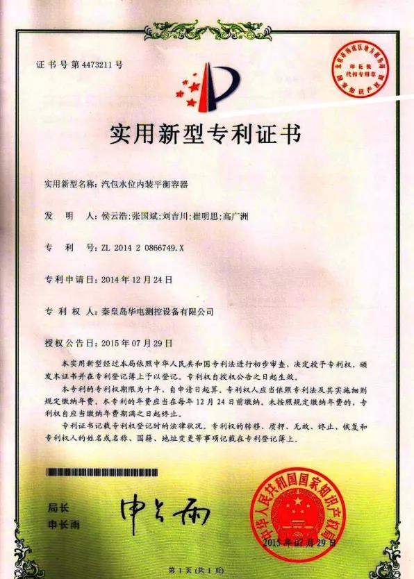 我公司中標(biāo)的6套內(nèi)裝平衡容器,型號(hào)HDSC-DNZ-2O,是我集團(tuán)公司下屬秦皇島華電測控設(shè)備有限公司自主研發(fā)生產(chǎn)的專利產(chǎn)品(專利號(hào):ZL201420866749.X),該產(chǎn)品自投入市場后,使用效果良好,水位測量精準(zhǔn),深受廣大用戶好評。