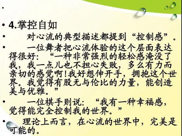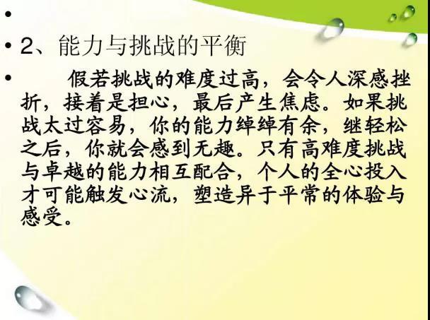 當(dāng)你全身心地投入某件事,達(dá)到忘我的程度,并由此獲得內(nèi)心的秩序與安寧時,一種極大的滿足感悄悄地潛入了你的心,使你快樂。這就是我們今天要來學(xué)習(xí)和探討的“心流”體驗。