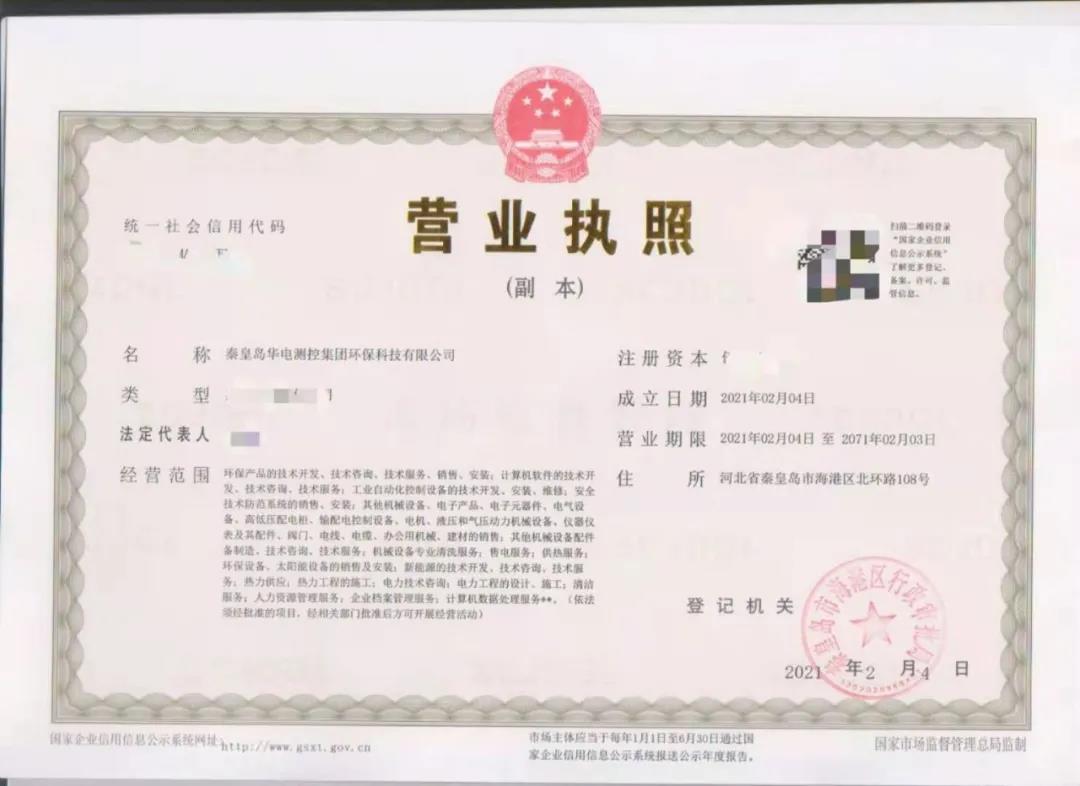 【企業(yè)動態(tài)】熱烈慶祝秦皇島華電測控集團環(huán)??萍加邢薰咀栽O(shè)立