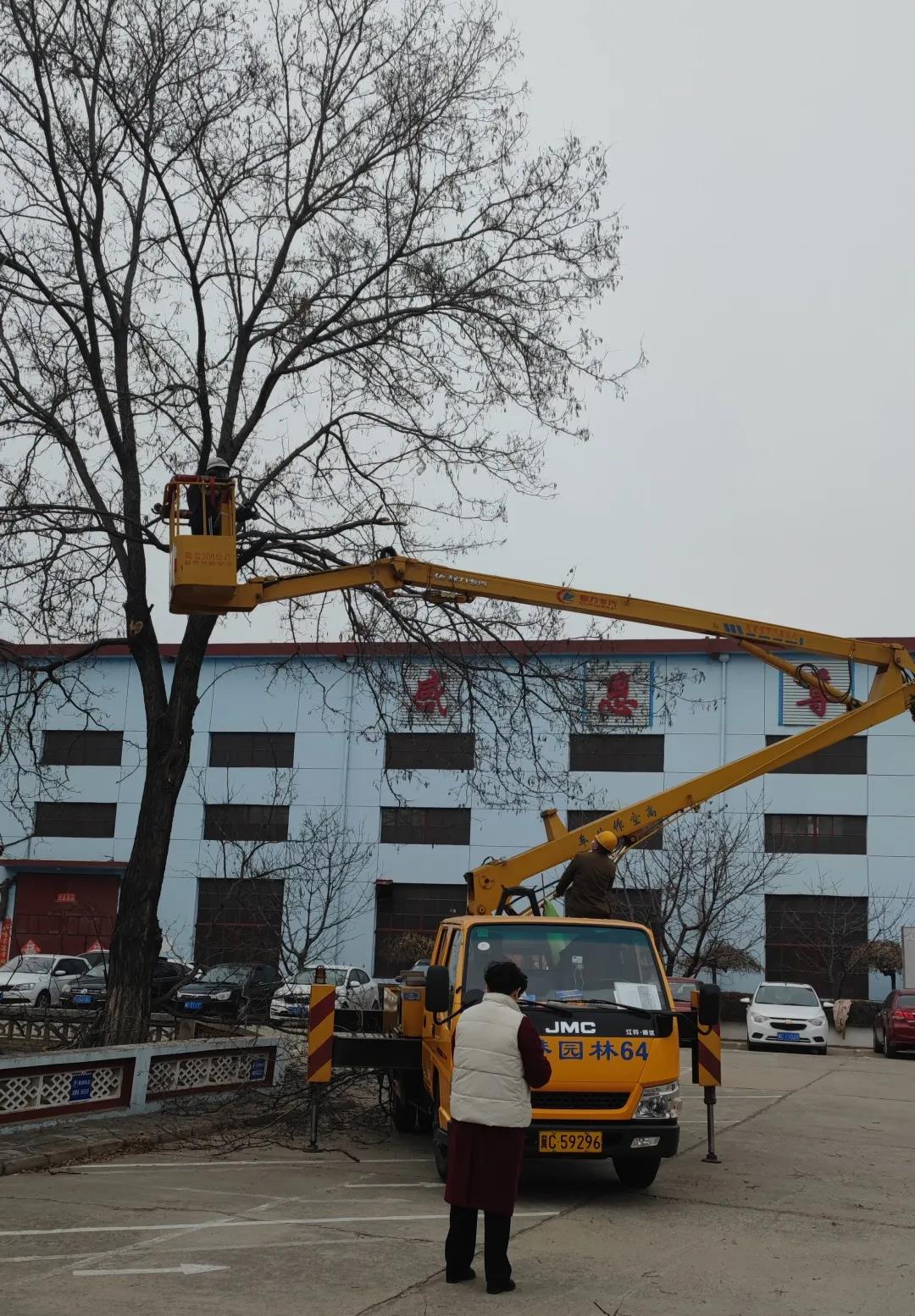 公司院內槐樹樹木種植年限長,長勢茂盛偏高,枝干生長雜亂,嚴重影響了通風、光照等,并對廠區(qū)內出行人員、車輛存在著安全隱患?;顒又?,區(qū)園林局調派兩臺專業(yè)升降車、幾名專業(yè)人員帶著長電鋸、長切刀等專業(yè)工具將槐樹、香椿樹等樹干衰老枝、弱枝、傷枝、病枝、分枝進行修剪。我公司員工分工合作、積極配合,不怕臟不怕累不怕扎,將修剪下的樹枝從花園內清理出來并堆放不妨礙處,經過他們的共同奮戰(zhàn),圓滿完成了廠區(qū)花園樹木的修剪工作,使經過冬日風雪洗禮的樹木重新煥發(fā)生機,切實為綠化、美化家園、生態(tài)環(huán)保護工作夯實了基礎。