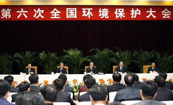 第六次全國環(huán)境保護(hù)大會舉行。溫家寶在會上講話,強調(diào)要綜合運用法律、經(jīng)濟、技術(shù)和必要的行政辦法解決環(huán)境問題。