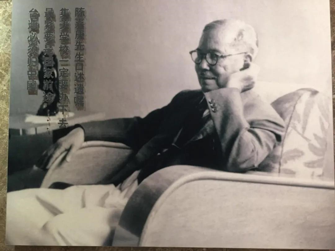 1984年2月9日,在廈門(mén)經(jīng)濟(jì)特區(qū)視察的鄧小平來(lái)到廈門(mén)大學(xué)和集美學(xué)村,并參觀了集美陳嘉庚紀(jì)念館,深為感佩。回北京后,他便揮毫為即將出版的《陳嘉庚畫(huà)冊(cè)》題詞:"華僑旗幟民族光輝陳嘉庚"。這是他將毛澤東為陳嘉庚書(shū)寫(xiě)的一件條幅:"華僑旗幟民族光輝"借用過(guò)來(lái)的。這件條幅,毛澤東曾在1945年11月抗戰(zhàn)勝利后,在重慶時(shí)送給陳嘉庚的題書(shū)。