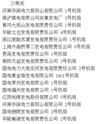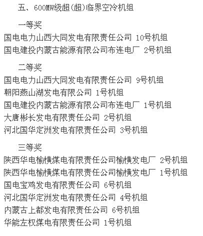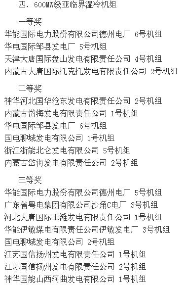 2015全國火電600MW級機(jī)組年度競賽結(jié)果