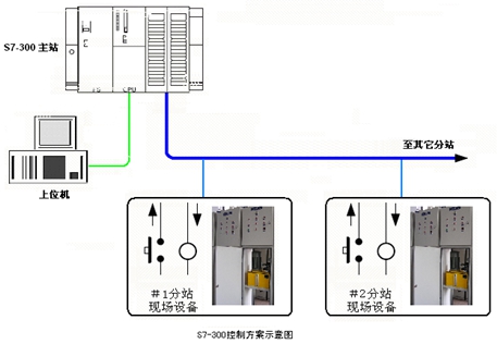 整套系統(tǒng)采用S7-300集中控制方式,共設(shè)置一個(gè)主站和六個(gè)就地控制柜。