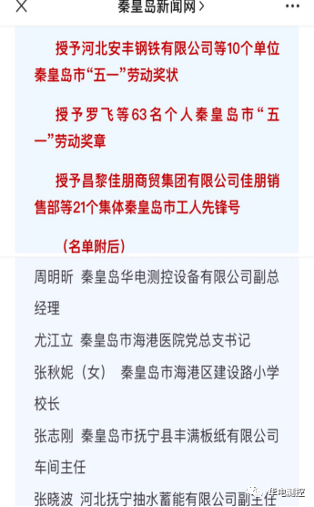 4月26日,秦皇島市“五一”勞動獎狀、“五一”勞動獎章和工人先鋒號揭曉,秦皇島華電測控集團有限公司常務副總經(jīng)理周明昕同志被授予2022年秦皇島市“五一”勞動獎章稱號。獲此殊榮,華電測控集團全體員工向周明昕同志表示祝賀!