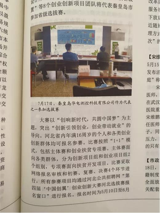 《秦皇島年鑒(2021)》正式發(fā)布——秦皇島華電測(cè)控集團(tuán)環(huán)??萍加邢薰緟⒓拥谒膶谩爸袊?guó)創(chuàng)翼”創(chuàng)業(yè)創(chuàng)新大賽的報(bào)道入選其中
