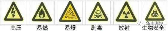 危險(xiǎn)標(biāo)識(shí)由安全色,幾何圖形和圖形符號(hào)構(gòu)成,用以表達(dá)特定的危險(xiǎn)信息,提示人們周圍環(huán)境中有相關(guān)危險(xiǎn)因素存在。常見的危險(xiǎn)標(biāo)識(shí)包括高壓、易燃、易爆、劇毒、放射、生物安全等。