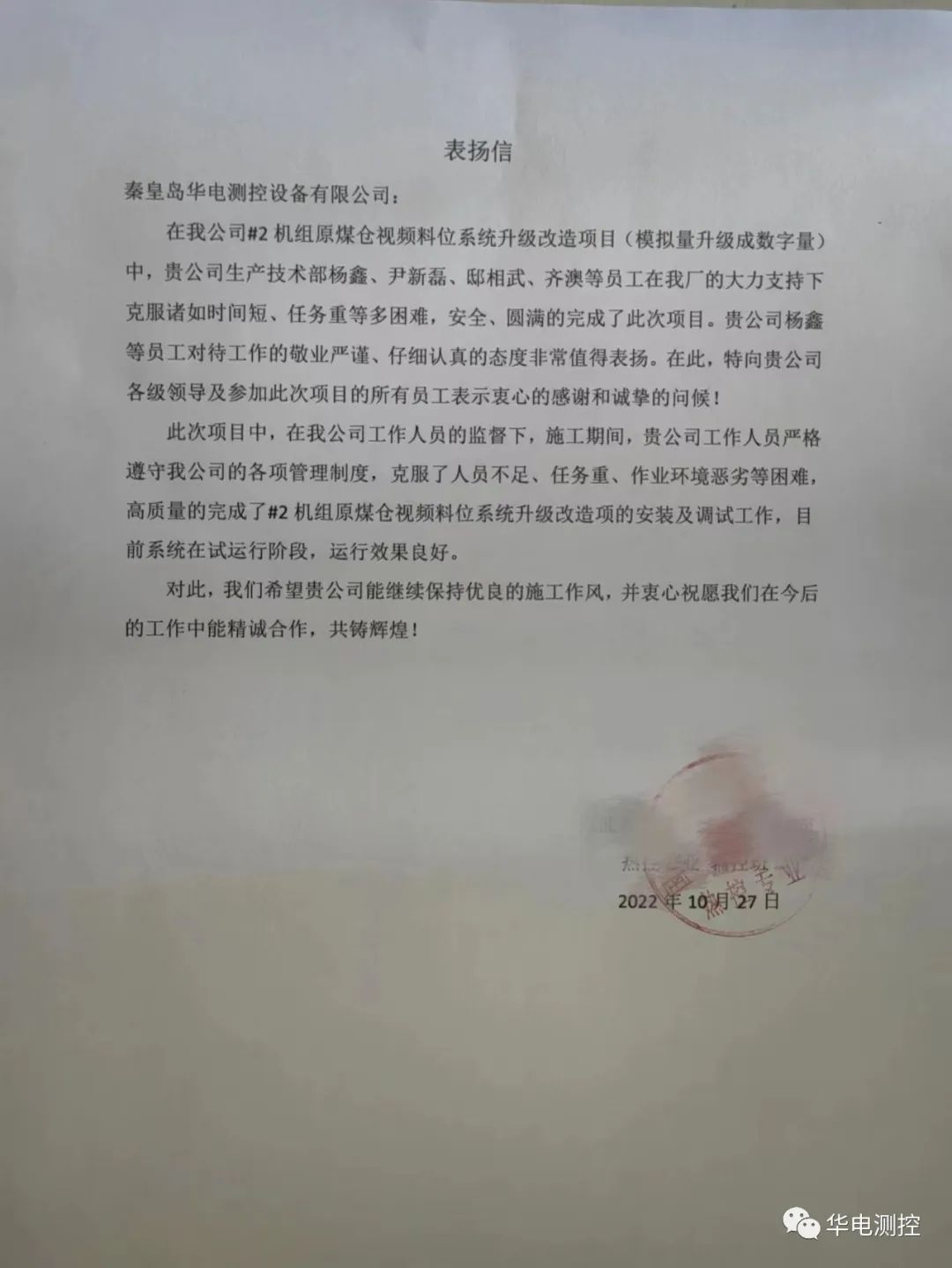 客戶對(duì)我們產(chǎn)品和服務(wù)的認(rèn)可,便是我們最大的收獲和動(dòng)力。秦皇島華電測(cè)控設(shè)備有限公司一直以來(lái)秉承著“以坦誠(chéng)交朋友,以創(chuàng)新謀發(fā)展,以質(zhì)量求生存,以服務(wù)贏信譽(yù),以改進(jìn)拓市場(chǎng)”的企業(yè)經(jīng)營(yíng)方針,急用戶之所急、產(chǎn)用戶之所需,為電廠安全運(yùn)行保駕護(hù)航。