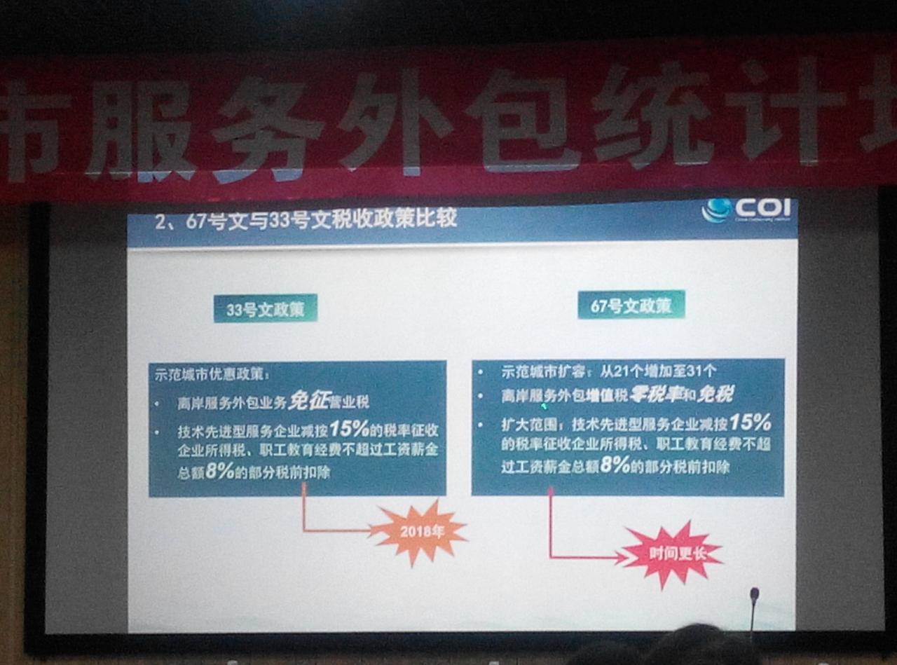 通過(guò)本次培訓(xùn)清晰了什么是服務(wù)外包;服務(wù)外包的分類(lèi):2014年現(xiàn)行統(tǒng)計(jì)標(biāo)準(zhǔn)分為三個(gè)門(mén)類(lèi)(ITO信息技術(shù)外包、BPO業(yè)務(wù)流程外包、KPO知識(shí)流程外包),九個(gè)大類(lèi)(軟件研發(fā)外包、信息技術(shù)服務(wù)外包、運(yùn)營(yíng)和維護(hù)服務(wù)、內(nèi)部管理外包服務(wù)、業(yè)務(wù)運(yùn)營(yíng)外包服務(wù)、供應(yīng)鏈外包服務(wù)、商務(wù)服務(wù)外包、技術(shù)服務(wù)外包、研發(fā)服務(wù)外包),35個(gè)中類(lèi);服務(wù)外包與服務(wù)貿(mào)易之間的關(guān)系等。服務(wù)外包產(chǎn)業(yè)的發(fā)展在國(guó)家政策《國(guó)務(wù)院關(guān)于促進(jìn)服務(wù)外包產(chǎn)業(yè)加快發(fā)展的意見(jiàn)》國(guó)發(fā)[2014]67號(hào)文件(離岸服務(wù)外包增值稅零稅率和免稅,擴(kuò)大范圍:技術(shù)先進(jìn)型服務(wù)企業(yè)減按15%的稅率征收企業(yè)所得稅,職工教育經(jīng)費(fèi)不超過(guò)工資薪金總額8%的部分稅前扣除)的支持力度下,不斷成長(zhǎng)提升。通過(guò)建立的有效溝通和營(yíng)銷(xiāo)渠道,構(gòu)建交易平臺(tái),積極走出去,尋求與國(guó)際接軌的走向國(guó)際的策略,借助云計(jì)算、大數(shù)據(jù)等新技術(shù)融合共同發(fā)展。最后,主辦方秦皇島市商務(wù)局代表做了總結(jié)發(fā)言,還為大家精心準(zhǔn)備了冷餐,就餐的同時(shí)大家相互交流,彼此相互了解。