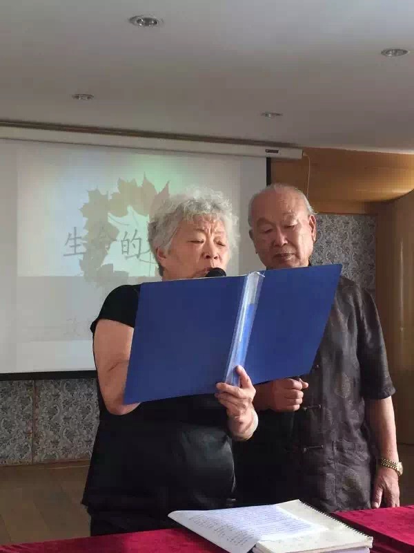 楊姨盡管已是80高齡,但精神矍鑠,聲音洪亮,腰板挺直,乍看像60來歲的人。她與高齡83歲的愛侶攜手前來,盈盈淺笑,光彩照人,見之忘憂。她和老伴朗誦了他們共同寫就的詩,《寫給老伴的悄悄話》,聲情并茂,場(chǎng)面感人。然后,楊女士用中、英雙語作了自我介紹,語言流利,悅耳動(dòng)聽。