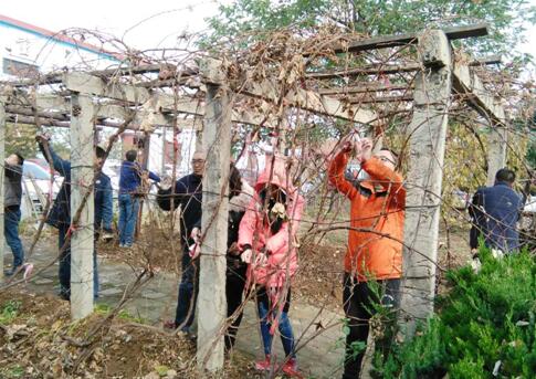 在黨支部書記劉劍鋒同志的指揮下,大家兵分兩路,不到一個(gè)小時(shí)就處理好了花園中所有的葡萄秧。勞動(dòng)過程中,大家其樂融融,有說有笑。希望這些葡萄秧們安全過冬,來年結(jié)出甜美的葡萄。