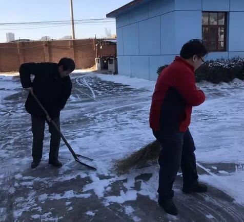 公司大院里陽(yáng)光照射不到的地方,積雪還有很多,員工進(jìn)進(jìn)出出很不安全,1月9日上午管理部組織人員進(jìn)行清雪,大家默契配合,很快就將路面清理干凈了,背陰的地方,天氣很冷,但是掃雪的熱情早已沖破嚴(yán)寒。質(zhì)檢安全部經(jīng)理劉慶明,不顧腰痛,也加入了我們,還有劉磊,因?yàn)樗麄兊纳眢w不好,被大家攔下了。