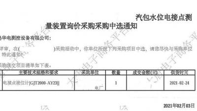 【企業(yè)動態(tài)】中標喜訊!我公司成功中標某電廠電接點液位計改造項目” 2021-02-072021年2月3日,我公司在大唐集團安徽某電廠的電接點液位計改造項目的競標中,憑借強大的綜合實力以及過硬的產(chǎn)品質(zhì)量,通過層層篩選、激烈角逐,以絕對的優(yōu)勢順利中標。 該項目采用公開招標方式,我公司自收到招標信More