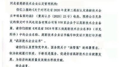 【企業(yè)動態(tài)】華電測控第六次通過高新技術(shù)企業(yè)重新認定” 2021-02-07近日,秦皇島華電測控設(shè)備有限公司收到了全國高新技術(shù)企業(yè)認定管理工作領(lǐng)導小組辦公室下發(fā)的《關(guān)于河北省2020年第三批高新技術(shù)企業(yè)備案的復函》(國科火字〔2020〕243號〕文件,公司第六次順利通過高新技術(shù)企業(yè)認定More