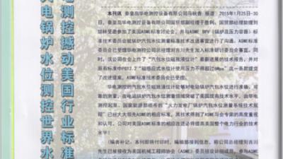 近日,秦皇島華電測(cè)控設(shè)備有限公司頻繁與美國(guó)ASME研討鍋爐汽包水位測(cè)量標(biāo)準(zhǔn)一事,受到業(yè)界廣泛關(guān)注。秦皇島企業(yè)家協(xié)會(huì)會(huì)刊2015年第1期,在第1頁協(xié)會(huì)動(dòng)態(tài)欄目發(fā)表一文,題為“華電測(cè)控撼動(dòng)美國(guó)行業(yè)標(biāo)準(zhǔn),搏擊火電鍋爐水位測(cè)More
