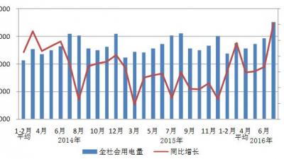 中電聯(lián)發(fā)布2016年1-7月份電力工業(yè)運行簡況” 2016-08-241-7月份,全國電力供需總體寬松。受氣溫偏高和上年同期基數(shù)偏低等因素影響,全社會用電量增速同比提高;工業(yè)用電量增速同比提高,制造業(yè)累計用電增速由負(fù)轉(zhuǎn)正;鋼鐵和有色金屬冶煉行業(yè)用電量持續(xù)負(fù)增長,拖累高載能行業(yè)用電量增More